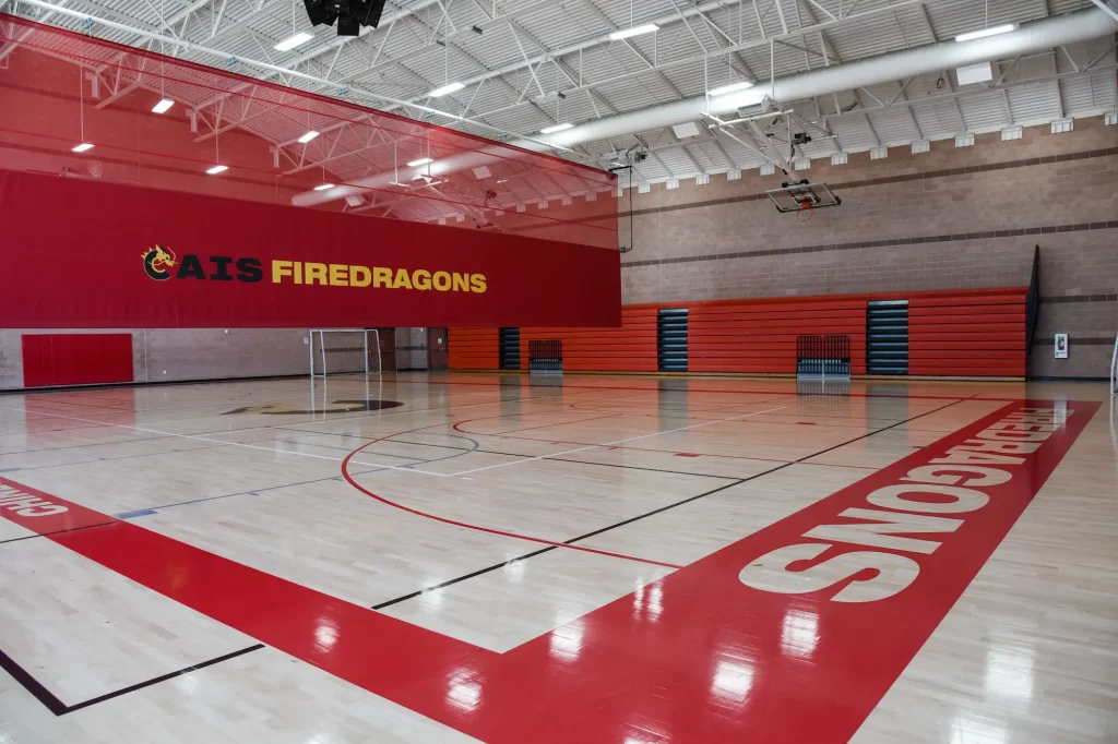 The Ang Athletics Center houses multipurpose athletic facilities including full-size gymnasium/indoor basketball court, and locker rooms along with a U8 soccer pitch. During the school day, it provides flexible space for PE classes across the grades. After school, this spectacular space not only provides practice and game facilities for our Firedragons volleyball, basketball and futsal teams, it is also used around the calendar by our after school programs, Summer Camp, and nonprofit community organizations.