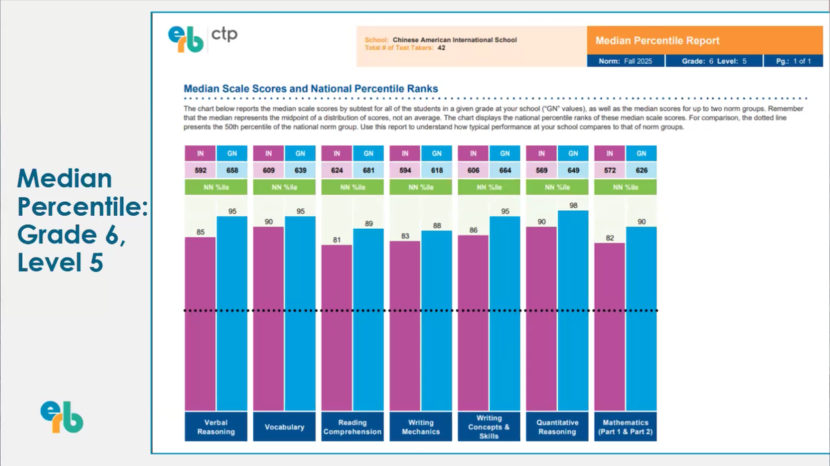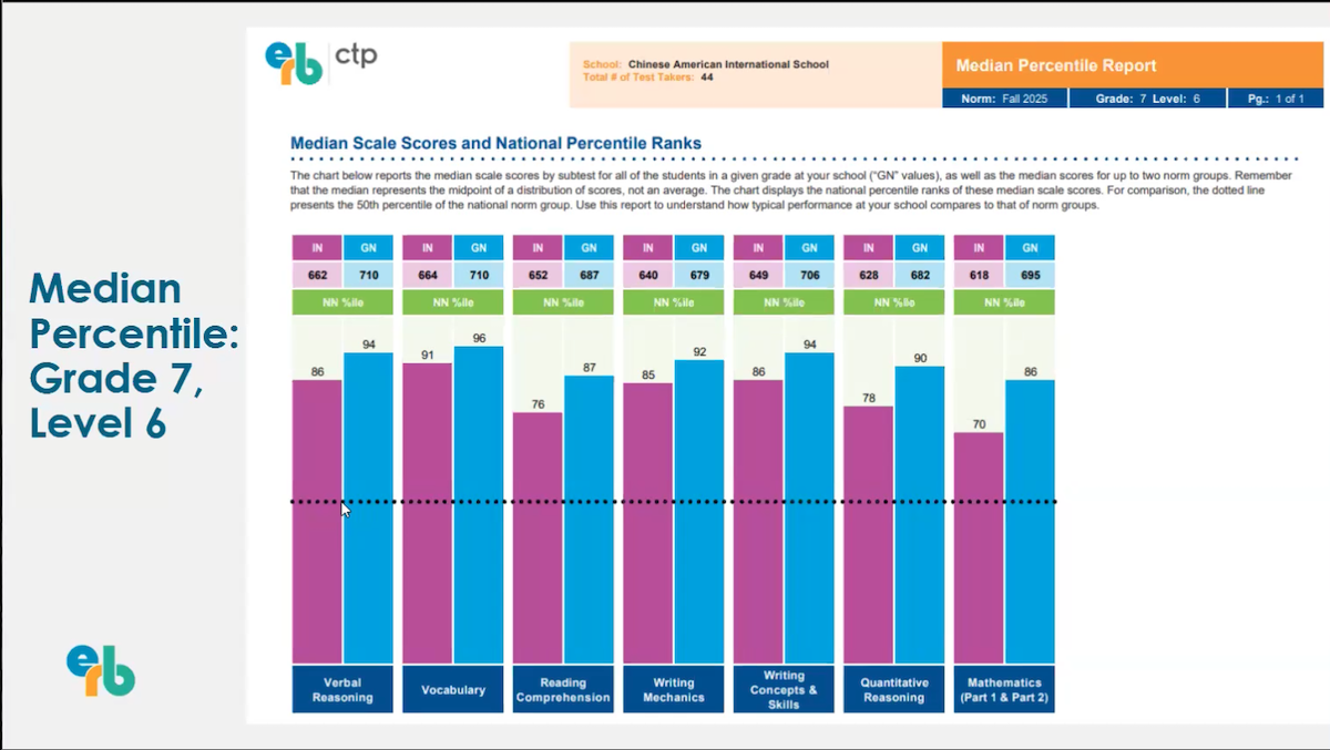 As we typically see each year, ERB results are one data point demonstrating the “bilingual bump” enjoyed by CAIS students, in which they outpace their monolingual peers by middle school in English reading, verbal, and writing skills. This spring 4th-7th grade parents joined English Curriculum Director Cristina Calcagno and an ERB testing consultant for a Zoom to learn more about the ERB CTP-5 assessment, which CAIS 4th-7th grade students took in late autumn this school year.